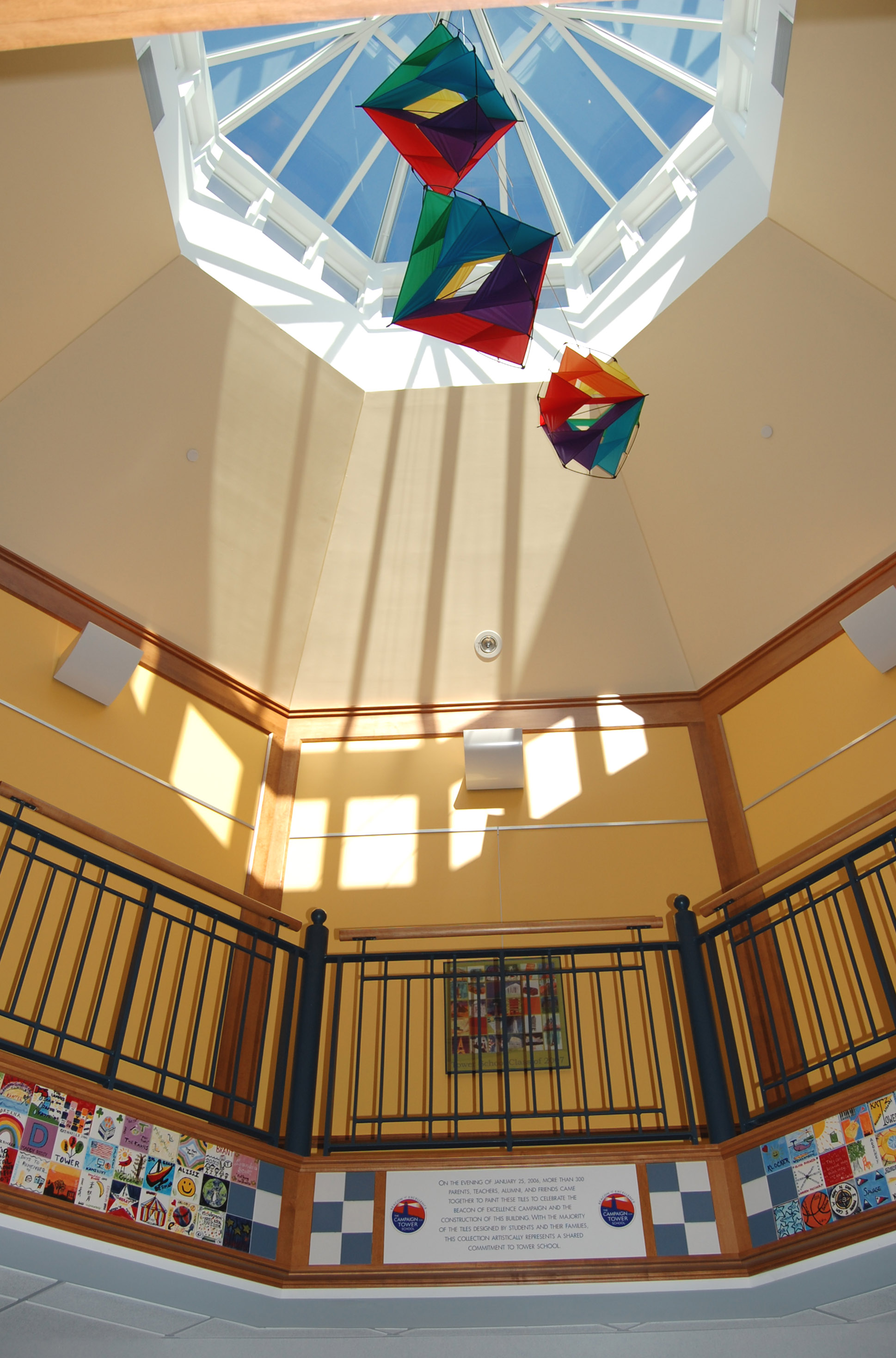 The project includes a 15,000 sf two story addition accomodating a new Upper School, Commons, and 400 seat Performing Arts Center. A portion of the existing facility was renovated into a new Science Center. This is the first phase in a series of campus improvements proposed by the Master Plan.